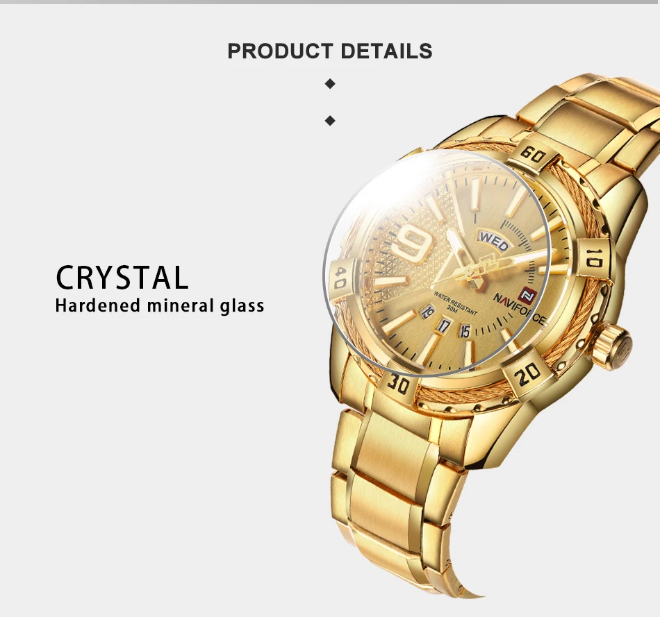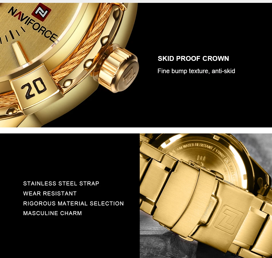 Increase quantity for NAVIFORCE 9117 S waterproof Sports Watch Full Steel Quartz Watch, Men's Water Resistant Analog Wrist Watch 9117 Gold