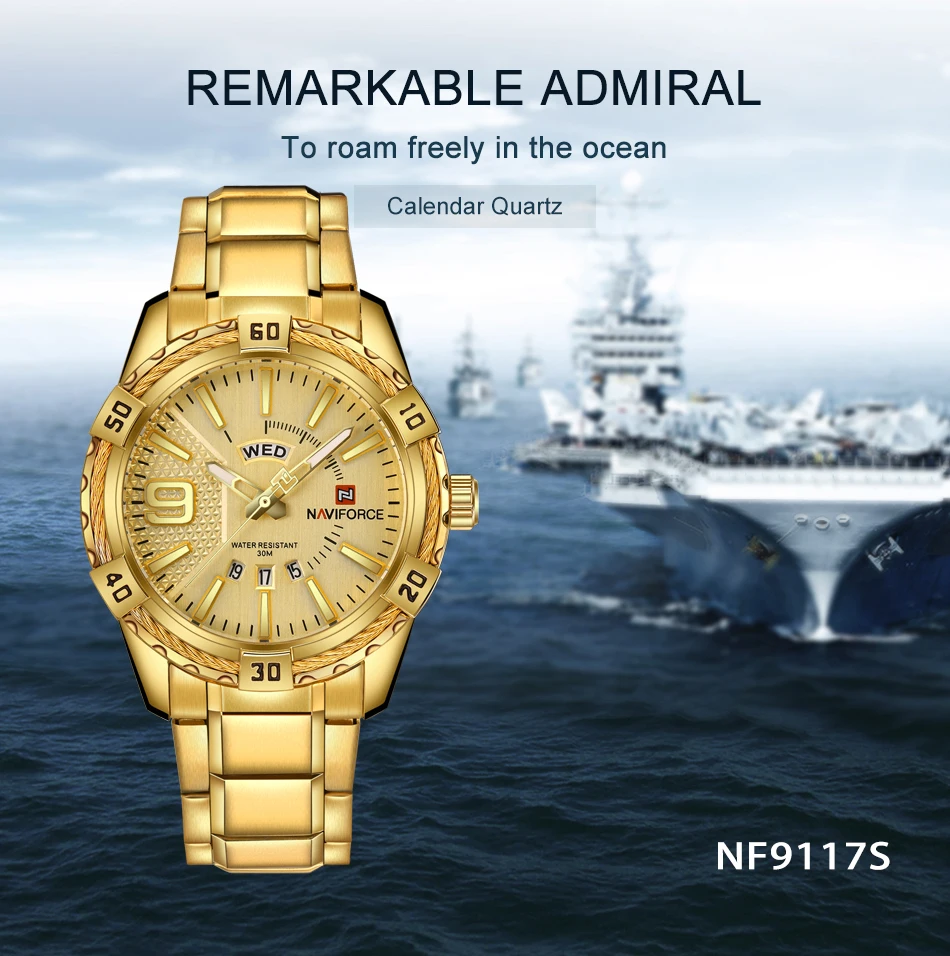 NAVIFORCE 9117 S waterproof Sports Watch Full Steel Quartz Watch, Men's Water Resistant Analog Wrist Watch 9117