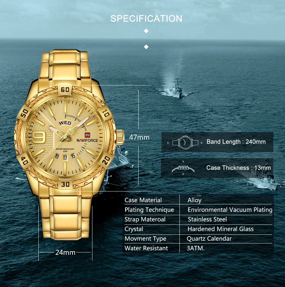 NAVIFORCE 9117 S waterproof Sports Watch Full Steel Quart...